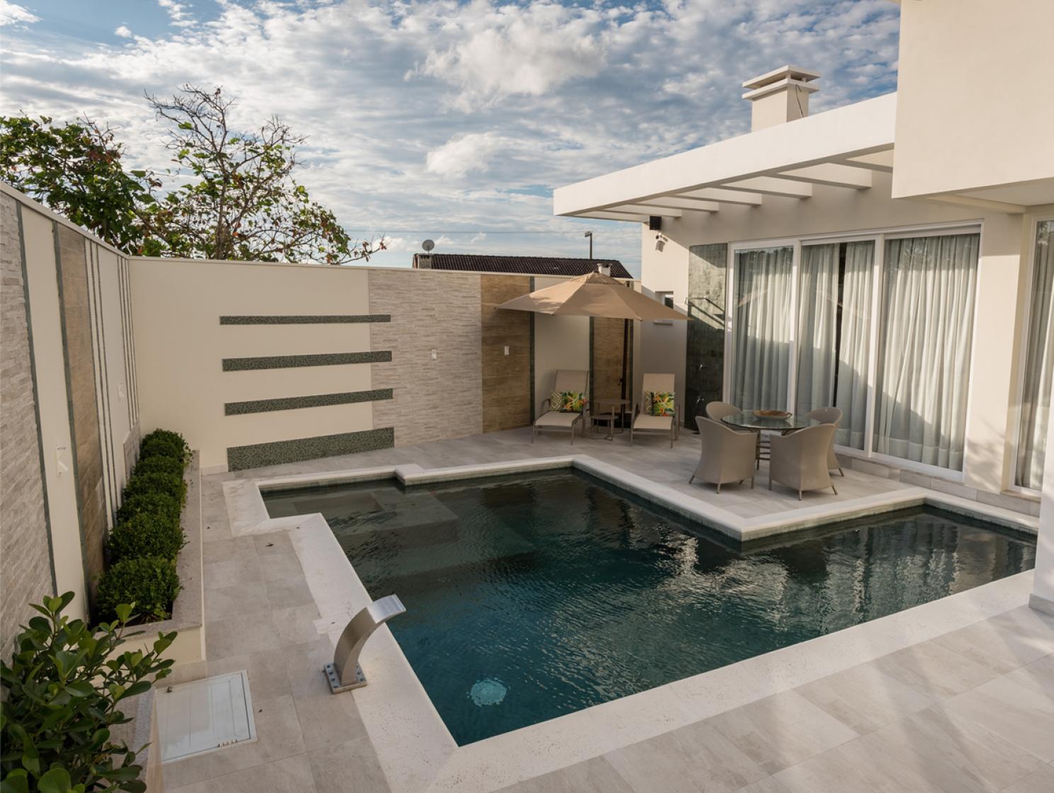 Linha Classic em área externa com piscina por Tatiana Pradal Arquitetura por Tatiana Pradal Arquitetura