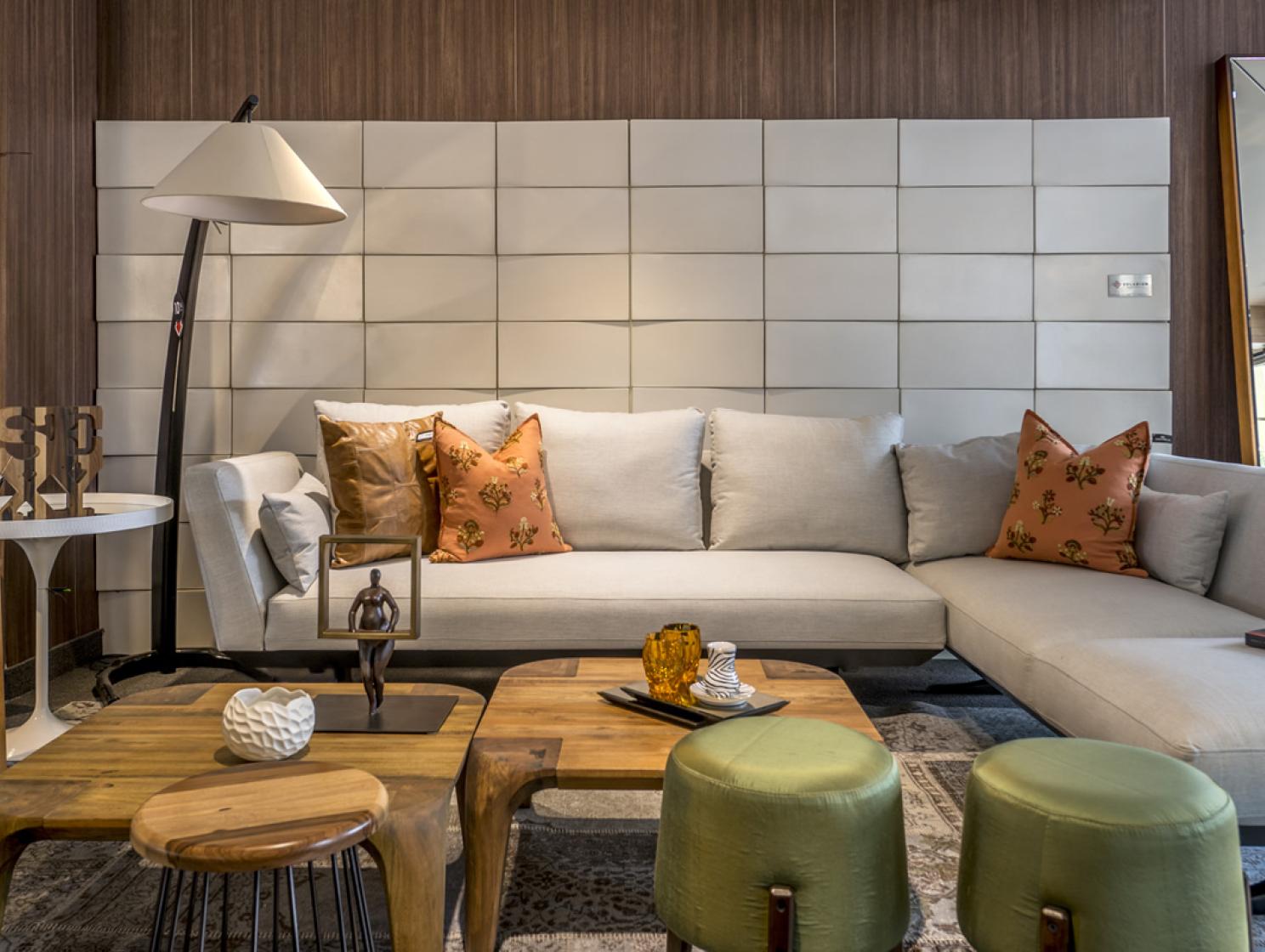 The Illusione line offers a unique characteristic: light and shadow effects due to the uprising of one of its sides which creates an elegant movement and brings contrast to the environments.